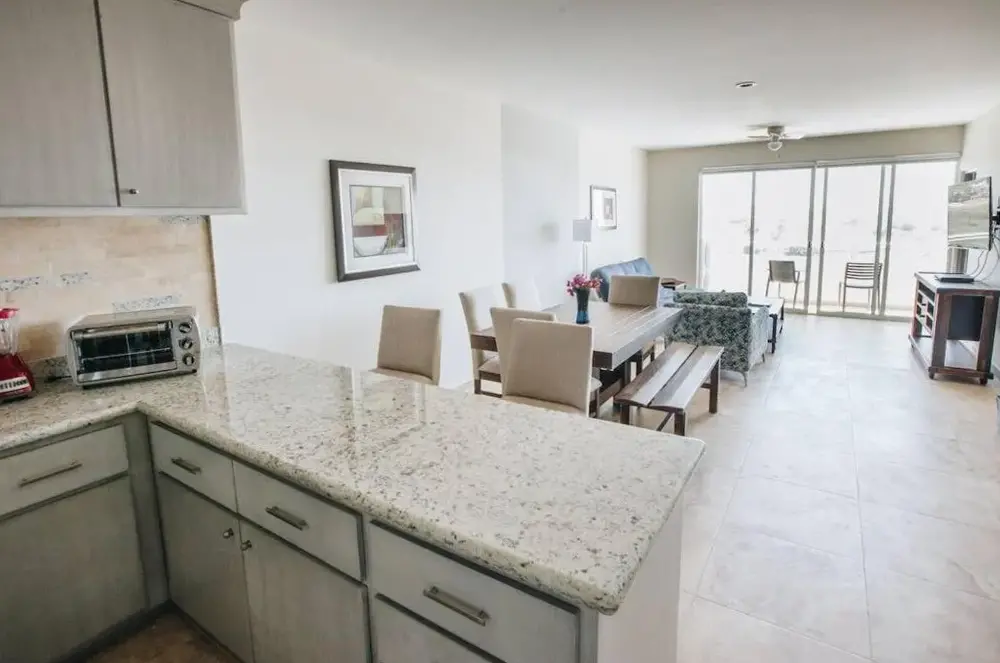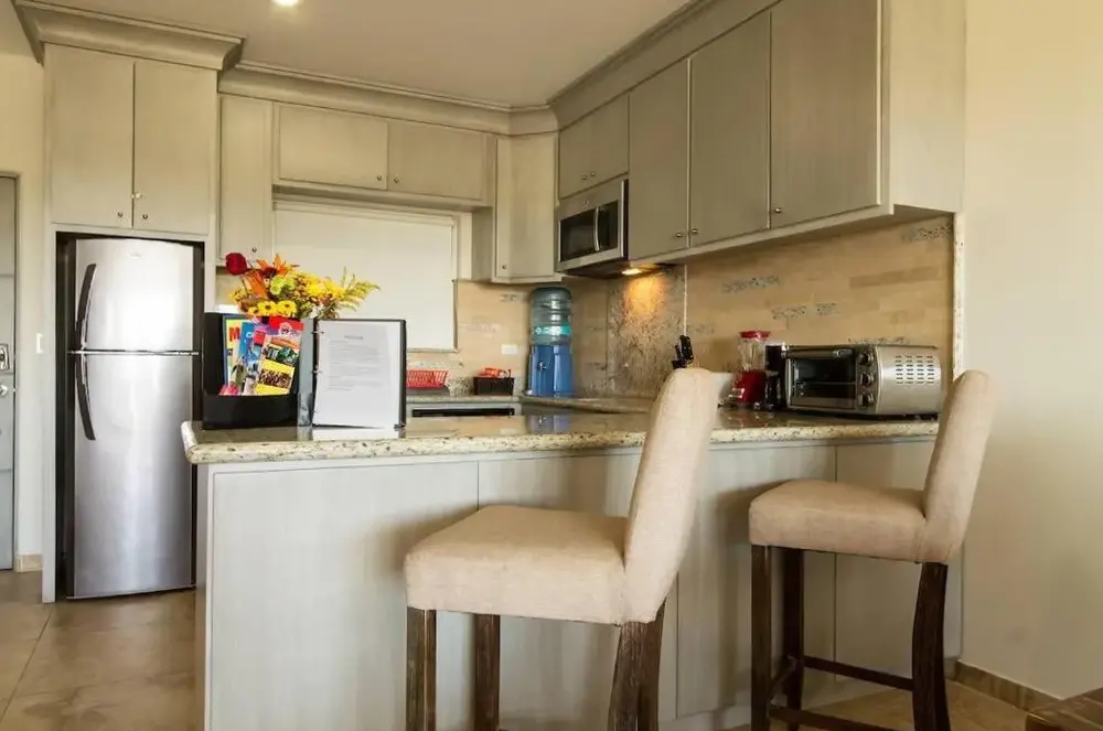 El Cabo Cottage Bahia del Tezal ofrece una estancia cómoda y funcional en un departamento situado en el quinto piso de un edificio tranquilo. El espacio cuenta con cocina totalmente equipada y limpia, así como una lavandería sencilla y eficiente. Destaca su ubicación estratégica cerca de varios puntos interesantes, incluyendo playas cercanas como Playa de Divorcio y Playa de Amante, además de establecimientos gastronómicos y servicios locales. El complejo dispone de piscina al aire libre en la azotea, ideal para relajarse después de un día de actividades. Además, se ofrecen conexión gratuita a internet y aparcamiento gratuito.